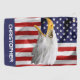 Brave head of a bald eagle over the American flag. A patriotic golf towel for anyone. Customisable template name at the bottom. You can change or delete the name. You can transfer this design to a number of other towels. If you need to change the font, font colour, the colour of the background; if you need to adjust the image to the printable area, please, use the "Edit Design" button or "Click to customise further" under the "Details" link. This beautiful towel can be found in the "Sports" collection or in the "Sports, Toys & Games"-->"Sports & Outdoor"-->"Sports Equipment"-->"Golf"-->"Golf Towels" department. A choice of 16 eagles on sixteen golf towels. Buy one, have fun, and be happy.