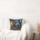 Brave Feline Knight in Fiery Fantasy Setting Cushion