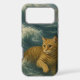 ,ginger cat, ocean waves, dramatic art, brave cat, stormy sea, fantasy cat, heroic animal, vintage style, nautical theme, whimsical art