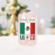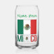 Personalised can glass features the Mexican Flag with the word MEXICO below, in the colours of the flag. Add your name, in green letters, in the space provided for a personalised touch. Great for family reunions, travel groups, and clubs. Cool gift for Father's Day or Mother's Day. Terrific housewarming gift, too.