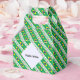Brazilian Flag, tiled on a diagonal, with the word, BRAZIL, below, in the colours of the flag. A white space of squiggly squares has a place for your name to add a personalised touch or create a customised gable favour box for your party or event. Perfect for a retirement, reunion, or bon voyage event.