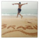 COPYRIGHT Stephanie Rabemiafara / DanitaDelimont.com | AF36 SRA0000.jpg | BRAZIL. Barechest man wearing a swimming suit jumping on the sand over the name Brazil written in the sand, jumping towards the sea