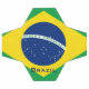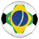 Soccer ball with one side of the ball done in the green and yellow Brazil flag, with the blue orb with stars, in the middle. White blue text reads Brazil and can be personalised to read what you want.