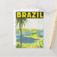Vintage travel poster for Brazil, showing Rio De Janeiro's Sugarloaf Mountain and Guanabara Bay.