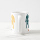 This coffee mug features illustrations of a Brazilian Jiu Jitsu or BJJ gi in teal, grey, yellow and red and is ready to be personalised with a name or other text. The graphics wrap around the mug and the name appears on both sides, in red on one side and in grey on the other. Makes a great gift for BJJ instructors and students.