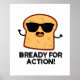 Bready For Action Funny Bread Pun features a cute slice of bread ready for action. Perfect pun gift for family and friends who love cute bread puns.