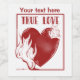 An anti love, anti relationships, illustration of a romantic card that is on fire, symbolic of a divorce or relationship break up. A heart with the words true love, on fire.