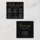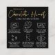 Trendy Breakable Chocolate Heart Care Card with modern script font in faux gold and care icons. This luxurious black and gold candy heart care instructions guide includes step-by-step care and storage instructions as well as space for your logo so you can make custom bakery cards for your chocolate smash heart boxes.