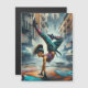 The design shows a lively scene in which a break dancer women performs in full swing on the street. The main character, the break dancer, is in the middle of a powerful handstand.