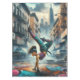 The design shows a lively scene in which a break dancer women performs in full swing on the street. The main character, the break dancer, is in the middle of a powerful handstand.