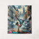 The design shows a lively scene in which a break dancer women performs in full swing on the street. The main character, the break dancer, is in the middle of a powerful handstand.