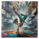Breakdancer Women in action New York silhouette Tile