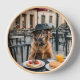 Capture the charm and humour of this adorable scene featuring a classy dog wearing a fedora and glasses, calmly enjoying a breakfast spread at a French sidewalk café. With pancakes, toast, and a glass of orange juice, this image blends elegance and comedy in a unique snapshot that’s perfect for prints, posters, or social media content that stands out with personality and wit.