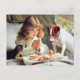 Breakfast in Bed: Girl, Terrier and Kitty Cat Postcard