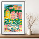Breakfast on Terrace Whimsical City Painting Art Poster