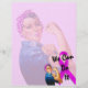 A vintage icon image representing women's rights, Rosie the Riveter, combined with the pink ribbon for Breast Cancer Awareness month in October.