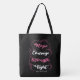 This tote bag is shown in a breast cancer awareness hope courage art print.