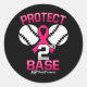 Breast Cancer Baseball Protect Second Base Funny Classic Round Sticker