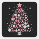 Breast Cancer Christmas Tree Snowflakes Xmas Square Sticker
