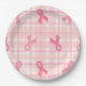 Breast Cancer Pink Ribbon Plaid Pattern Paper Plate