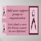 Add your support group name or organisation to customise this poster! Breast cancer can be cured in our lifetime! Available in 5 sizes!