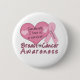 A pink heart and pink ribbon design breast cancer survivor and breast cancer awareness button with text that reads "Somebody I love is a survivor!".