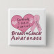 A pink heart and pink ribbon design breast cancer survivor and breast cancer awareness button with text that reads "Somebody I love is a survivor!".