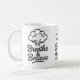 Start your day with a burst of motivation! The "Breathe & Believe" mug features a simple yet powerful design with a steaming cloud symbolising the power of focus and self-belief. Perfect for those moments when you need a reminder to stay calm and trust in your journey. Ideal for your morning coffee, tea, or any beverage that fuels your day. A must-have for anyone who embraces positive thinking and personal growth.