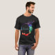 I give wanted to give this a 4 instead of a 5 because these Basic DARK T0shirts run unexpectedly SLIM or Narrow. Which is great if you do not have a potbelly, but I have a paunch. It isn't the shirt's fault that I've got a beer belly. The design and shirt itself is a quality cotton shirt. The color is more of a deep purple, but still a very pretty color. The Basic DARK T-shirts run a bit SLIMMER than the Basic Ts. The neck is a fraction narrower (or seems to be narrower) also. I'm a paunchy middle-aged woman and my neck is 12 inches (31cm) thick and the neckline fell about the same as in the photo of the man, and I had the desire to tug it a bit. So if you're a thick necked man or like loose shirts, be aware these are slimmer shirts. Once I get rid of my lockdown paunch it'll look great. The shirt washed well in cold water with no apparent bleeding. We don't have a dryer, so it hung dry. Did not shrink. Love the colors and the design. The design looks smaller on my shirt than it does on the model on-line. But still, it looks good on the shirt. The printing looks as it does on the model, just the size seems fractionally smaller. Washed garment in cold water, hung dry and design appeared unaffected.