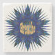 Pictured on a blue designed boho star is the word breathe in a dimensional light brown design