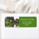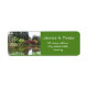 Breathtaking spring garden address spring garden personal address labels. Picture of water pond, red, green trees and bushes.