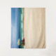 In this original photograph by ZoeSPEAK, it's a bright, sunny day at Jupiter Beach. The sky is deep blue, the breeze is blowing and the blue green ocean waves with their frothy white tops are gently rolling in. Two people sit in the minimal shade of a yellow beach umbrella in the golden sand, finishing the Florida beach scene on this Wall Tapestry.