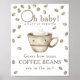 Watercolor coffee beans and kawaii cup of coffee and beans pattern. Coffee brewing baby shower. Coffee themed baby shower with. Text with coffee ring and with coffee beans and cup of coffee.