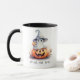 Introducing our delightful Halloween-themed coffee mug that infuses a touch of whimsy into your daily routine: a pristine white canvas adorned with an adorable depiction of a super cute ghost. This endearing ghost, sporting a playful witches hat, perches atop a jack-o' lantern, creating a scene that's sure to bring a smile to your face. This mug isn't just a cup; it's a source of cheerful charm that accompanies your favourite brew.