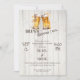 This rehearsal dinner invitation features a relaxed, rustic design that sets the tone for a fun and welcoming celebration before the big day. The vintage wood background, paired with beer glasses, gives the card a laid-back, “gather and celebrate” feel that’s perfect for a casual pre-wedding dinner.