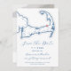 Set the tone for your Brewster wedding with this modern navy blue Save the Date featuring an elegant map of Cape Cod on the front and a customisable photo on the back. Perfect for weddings at Ocean Edge Resort, The Mansion at Ocean Edge, or The Brewster Inn & Chowder House, this design pairs style with convenience, offering free envelope addressing. Announce your special day in effortless coastal charm! Artwork by Coastal Map Designs.