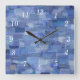 Wall clock featuring a cool blue block abstract of a pastel painting with texture with a brush stroke brick like pattern. Features different shades of blue. Looking for more prints or products? Feel free to visit my store: http://www.zazzle.com/timelessmomentsphtgy