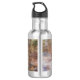 Water bottle featuring a brick abstract pastel painting with a combination of fall and winter shades of brown, blue, white, green and yellow.