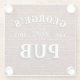 Cool bar coasters for your bar or pub with your name in curved letters above beer glasses clinking, the year your pub was established and PUB in white letters with a black shadow that makes the text pop against a rusty red brick wall. A great gift for the man in your life who has a home pub or home bar.