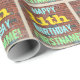 This fun birthday-themed wrapping paper design features a message like "HAPPY 11th BIRTHDAY, FIRSTNAME!", where the name can be personalised. The background features a representation of a brick wall consisting of some reddish-brown coloured bricks. The customisable message text features colours like blue, yellow, and green, and it has an appearance inspired by that of painted graffiti. Wrapping paper like this could perhaps be used when wrapping birthday gifts being given to somebody who is celebrating their eleventh birthday. [~Z0000274]