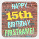 Brick Wall Graffiti Inspired 15th Birthday + Name Square Sticker