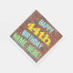 This fun birthday-themed paper napkin design features a message like "HAPPY 44th BIRTHDAY, NAME-HERE!", where the name can be personalised. The background features a representation of a brick wall consisting of some reddish-brown coloured bricks. The customisable message text features colours like blue, yellow, and green, and it has an appearance inspired by that of painted graffiti. Napkins like these could perhaps be used at a birthday party for somebody who is celebrating their forty fourth birthday. [~Z0000271]