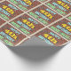 This fun birthday-themed wrapping paper design features a message like "HAPPY 4th BIRTHDAY, NAME-HERE!", where the name can be personalised. The background features a representation of a brick wall consisting of some reddish-brown coloured bricks. The customisable message text features colours like blue, yellow, and green, and it has an appearance inspired by that of painted graffiti. Wrapping paper like this could perhaps be used when wrapping birthday gifts being given to somebody who is celebrating their fourth birthday. [~Z0000274]
