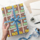 This fun birthday-themed wrapping paper design features a message like "HAPPY 50th BIRTHDAY, NAME-HERE!", where the name can be personalised. The background features a representation of a brick wall consisting of some reddish-brown coloured bricks. The customisable message text features colours like blue, yellow, and green, and it has an appearance inspired by that of painted graffiti. Wrapping paper like this could perhaps be used when wrapping birthday gifts being given to somebody who is celebrating their fiftieth birthday. [~Z0000274]