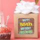 This fun birthday-themed sticker design features a message like "HAPPY 55th BIRTHDAY, FIRSTNAME!", where the name can be personalised. The background features a representation of a brick wall consisting of some reddish-brown coloured bricks. The customisable message text features colours like blue, yellow, and green, and it has an appearance inspired by that of painted graffiti. Stickers like these could perhaps be given as a birthday gift, or perhaps be used as decorations at a birthday party for somebody who is celebrating their fifty fifth birthday. [~Z0000273]