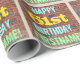 This fun birthday-themed wrapping paper design features a message like "HAPPY 61st BIRTHDAY, FIRSTNAME!", where the name can be personalised. The background features a representation of a brick wall consisting of some reddish-brown coloured bricks. The customisable message text features colours like blue, yellow, and green, and it has an appearance inspired by that of painted graffiti. Wrapping paper like this could perhaps be used when wrapping birthday gifts being given to somebody who is celebrating their sixty first birthday. [~Z0000274]