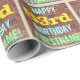 This fun birthday-themed wrapping paper design features a message like "HAPPY 63rd BIRTHDAY, FIRSTNAME!", where the name can be personalised. The background features a representation of a brick wall consisting of some reddish-brown coloured bricks. The customisable message text features colours like blue, yellow, and green, and it has an appearance inspired by that of painted graffiti. Wrapping paper like this could perhaps be used when wrapping birthday gifts being given to somebody who is celebrating their sixty third birthday. [~Z0000274]