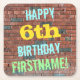 This fun birthday-themed coaster design features a message like "HAPPY 6th BIRTHDAY, FIRSTNAME!", where the name can be personalised. The background features a representation of a brick wall consisting of some reddish-brown coloured bricks. The customisable message text features colours like blue, yellow, and green, and it has an appearance inspired by that of painted graffiti. Coasters like these might be useful as practical decorations at a birthday party for somebody who is celebrating their sixth birthday. [~Z0000288]