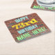 This fun birthday-themed coaster design features a message like "HAPPY 73rd BIRTHDAY, NAME-HERE!", where the name can be personalised. The background features a representation of a brick wall consisting of some reddish-brown coloured bricks. The customisable message text features colours like blue, yellow, and green, and it has an appearance inspired by that of painted graffiti. Coasters like these might be useful as practical decorations at a birthday party for somebody who is celebrating their seventy third birthday. [~Z0000288]