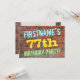 This fun birthday party invitation design features a message like "FIRSTNAME’S 77th BIRTHDAY PARTY!", where the name can be personalised, on the front. The background features a representation of a brick wall consisting of some reddish-brown coloured bricks. The customisable message text on the front features colours like blue, yellow, and green, and it has an appearance inspired by that of painted graffiti. The back features a customisable message that could include relevant details about the birthday party. Birthday party invitations like this might be a fun way to invite family and friends to a birthday party being held for somebody who is celebrating their seventy seventh birthday. [~Z0000287]